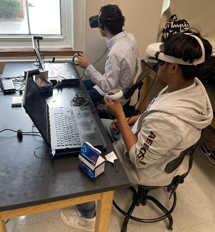 HIgh Students in Virginia explore a virtual field trip to the Jurassic. Student test scores rose after doing the simulation.